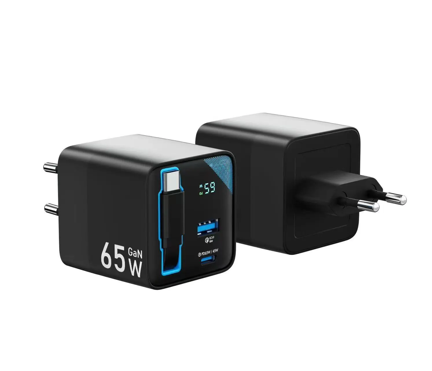 The SOKOYE SK-803 is packed with features that cater specifically to the needs of professionals. With its 65W power output, it ensures quick and efficient charging for a variety of devices, from smartphones to laptops. The integration of GaN technology is a game-changer, as it allows the charger to maintain high efficiency while minimizing heat production, a crucial factor for long-term reliability. This GaN Charger Supplier has equipped the SK-803 with a digital LED display, providing real-time monitoring of voltage and current, which is invaluable for tech-savvy users who like to keep tabs on their device's charging status. The inclusion of both Lightning and Type-C cables, alongside USB-A and USB-C ports, means that users can charge up to four devices simultaneously, making it an ideal solution for multitasking professionals.